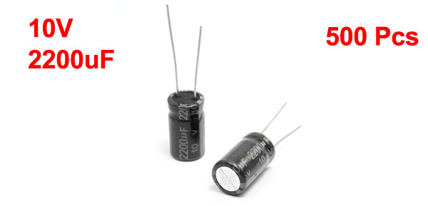 Capacitance 2200uF(±20%) Body Size 17mm x 10mm/ 0.67" x 0.4"(H*D) Lead Space 5mm Lead Length 26mm, 22mm Main Color Black Total Weight 868g Package Content 500Pcs(±2%) x Electrolytic Capacitors - Reviews