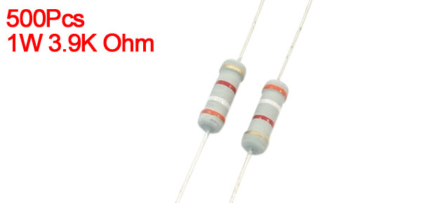 500Pcs 1W 3.9K Ohm 5% Tolerance Metal Oxide Film Resistor Axial Lead