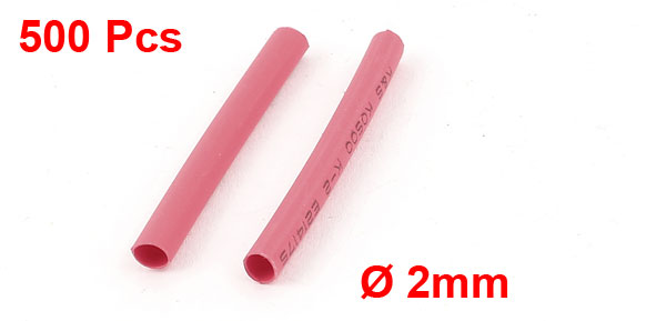 500pcs 2:1 2mm Red Polyolefin Heat Shrink Tubing Tube Wire Wrap