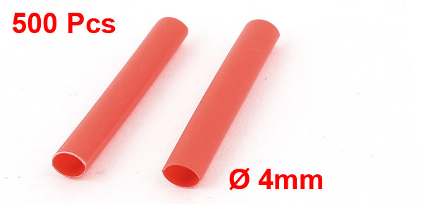 500pcs 4mm Ratio 2:1 Red Polyolefin Heat Shrink Tubing Cable Wire Wrap