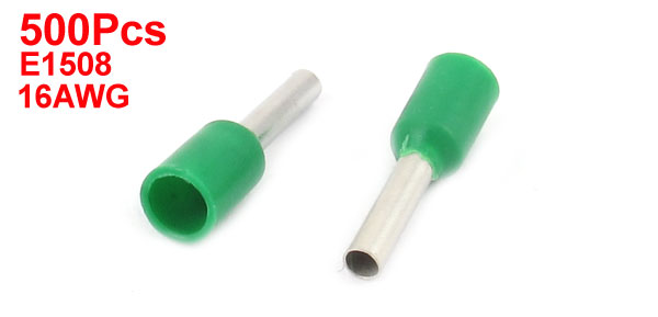 Product Name Insulated Terminal Model E1508 Design Tube Type Fit Cable Size 1.5mm2 16AWG Material Plastic, Metal Color Silver Tone, Green Net Weight 50g Package Content 500 Pcs (+/-2%) x Insulated Terminal - Reviews