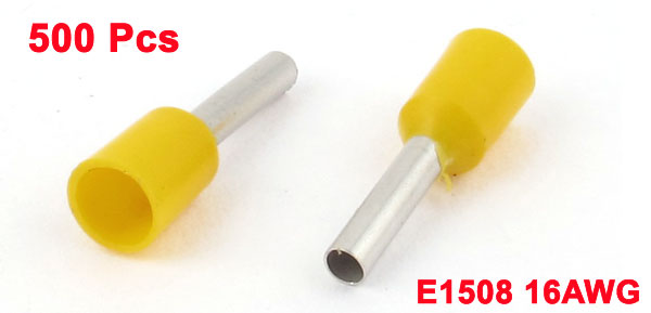 500Pcs E1508 16AWG Insulated Ferrule Cord Crimp End Terminal Connector Yellow