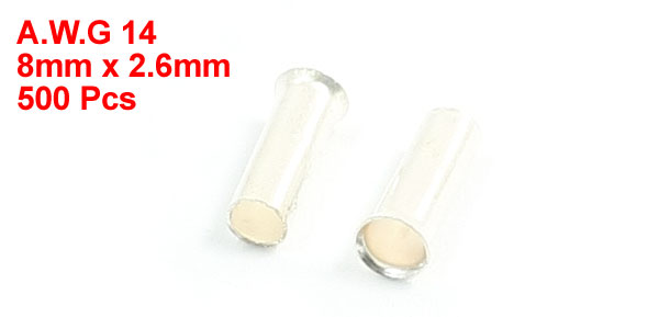 500PCS EN2508 8 x 2.6mm A.W.G 14 Crimp Terminal Non-Insulated Wire Ferrules