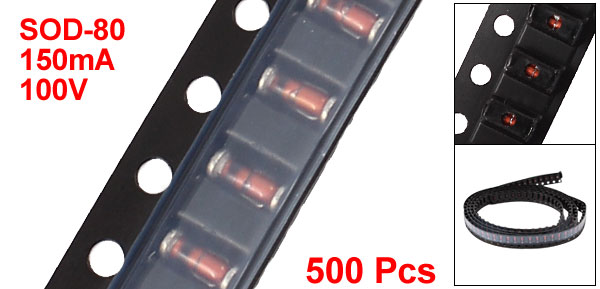 Product Name Switching Diodes Model LL4148 Diode Case/Package SOD-80 Current 150mA Reverse Voltage 100V Power 0.5W Peak Reverse Voltage ≤100V Repetitive Peak Forward Current ≤450mA High Switching Speed ≤4ns Body Dimension(Each) 3.5 x 1mm / 0.137" x 0.039"(L*D) Total Length 200cm / 6.56Ft Color Black Weight 10g Package Content 500 in 1 (±2%)x Switching Diodes - Reviews