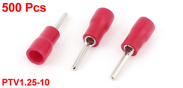 500pcs Red Insulated Connector Crimped Terminal Pin PTV1.25-10 for AWG22-16 Wire