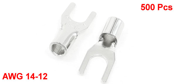 500pcs SNB3.5-4 Fork Type Non-Insulated Spade Cable Terminals for AWG 14-12
