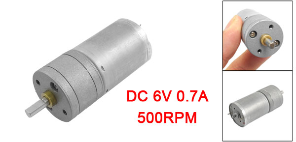 Product Name DC Geared Motor Model Type 25GA Rated Voltage DC 6V Current 0.7A Speed 500RPM Shaft Size 4 x 12mm/ 0.16" x 0.5"(D*H) Body Size 25 x 50mm / 0.9"x 2"(Max.D*H) Total Length 63mm / 2.5" Main Color Silver Tone Main Material Metal Weight 88g Package 1 x DC Geared Motor - Reviews