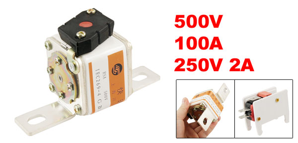 Product Name Fast Fuse Model RSA-L101N Rated Voltage 500V Rated Current 100A Micro Switch Rating Power 250V 2A Resistance 0.537mΩ(25C) Switch Total Size 4.9 x 3.2 x 1.7cm/1.93" x 1.26" x 0.67"(L*W*T) Installing Size 11.1 x 7.3mm/0.44" x 0.29"(L*W)