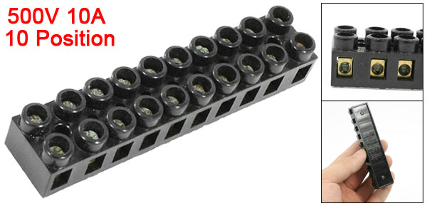 Product Name Barrier Terminal Block Material Metal, Plastic Rated Value 500V 10A Poles 10P (Dual Row) Size 90 x 20 x 15mm/ 3.5" x 0.8" x 0.6" (L*W*T) Color Black Net Weight 43g Package Content 1 x Barrier Terminal Block - Reviews
