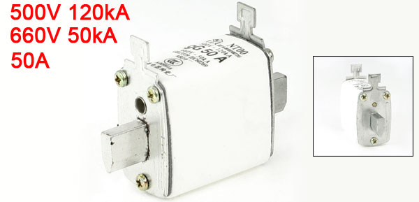 660V 50kARated Current 50A Body Size 4.8 x 3 x 4.5cm / 1.9"x 1.2"x 1.8" (L*W*H) Total Length 7.7cm/3" External Material Ceramic, Metal Color White, Silver Tone Net Weight 162g Package Content 1 x Fuse Link - Reviews