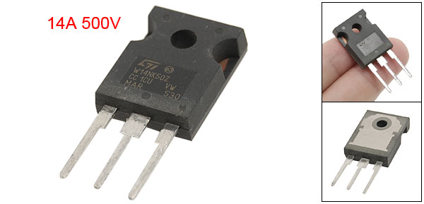 Product Name MOSFET Model.No STW14NK50Z Channel Type N Channel Drain Source Voltage 500V Drain Current 14A Mounting Hole Diameter 3.5mm/ 0.14" Pin Size 14 x 5mm/ 0.55" x 0.2" ( L* Pitch) Body Dimension 34 x 15 x 5mm/ 1.3" x 0.59" x 0.19"(L*W*T) Weight 5g Package Content 1 x N Channel MOSFET - Reviews
