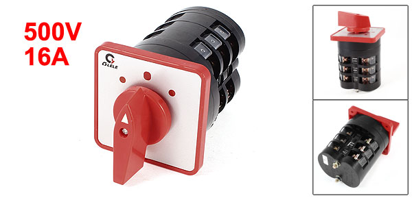 AC-4: 3AMechanical Life 100 x 104 times Operating Frequency 300 time per hour Contact Type 3 Phases Positions 3 Positions Terminal Quantity 12 External Marterial Plastic Total Size 72 x 72 x 128mm/2.8" x 2.8" x 5.0"(L*W*H) Weight 266g Package Content 1 x Changeover Switch - Reviews