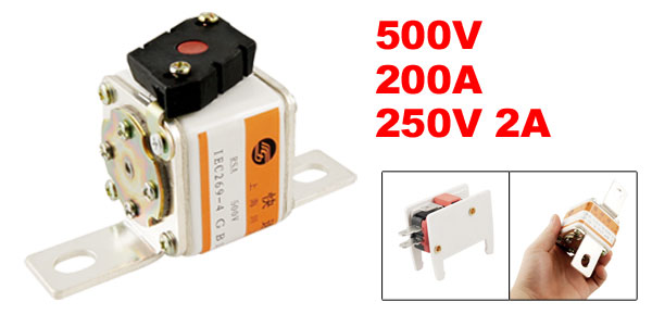 Product Name Fast Fuse Model RSA-L101N Rated Voltage 500V Rated Current 200A Micro Switch Rating Power 250V 2A Resistance 0.537mΩ(25C) Switch Total Size 4.9 x 3.2 x 1.7cm/1.93" x 1.26" x 0.67"(L*W*T) Installing Size 11.1 x 7.3mm/0.44" x 0.29"(L*W)
