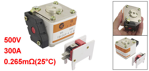 Product Name Super Rapid Fuse Model RSA-P101N Rated Voltage 500V Rated Current 300A Micro Switch Rating Power 250V 2A Resistance 1.132mΩ(25°C) Switch Total Size 4.9 x 3.2 x 1.7cm/1.93" x 1.26" x 0.67"(L*W*T) Installing Size 5.9 x 5.9mm/0.2" x 0.2"(L*W)