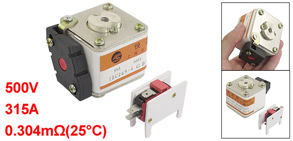 Product Name Super Rapid Fuse Model RSA-P101N Rated Voltage 500V Rated Current 315A Micro Switch Rating Power 250V 2A Resistance 0.304m ohm(25C) Switch Total Size 4.9 x 3.2 x 1.7cm/1.93" x 1.26" x 0.67"(L*W*T) Installing Size 6.4 x 6.4mm/0.2" x 0.2"(L*W)