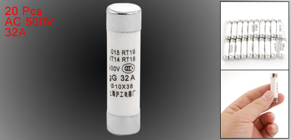 Product Name Cylindrical Fuse Model R015 Material Metal, Ceramic, Electronic Parts Rated Voltage AC 500V Rated Current 32A Main Color White, Silver Tone Size 10 x 38mm/0.39" x 1.4" (D*L) Weight 116g Package Content 20 x Cylinder Caps Fuse - Reviews