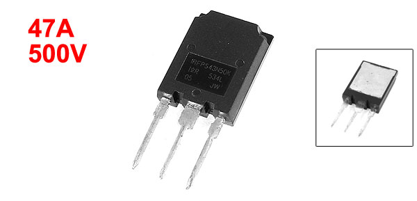 Details500V 47Amp High Voltage Current NPN Power Transistor IRFPS43N50K  Product Name NPN Transistor Model No. IRFPS43N50K Collector Current 47A Collector Emitter Voltage 500V Pin Length 15mm / 0.59" Total Size 35 x 15 x 5mm /1.4" x 0.59" x 0.2" (L*W*H) Main Material Silicon, Metal Main Color Black, Silver Tone Weight 7g Package 1 x NPN Transistor