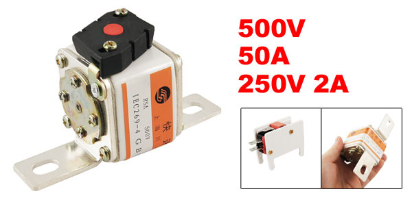 Product Name Fast Fuse Model RSA-L101N Rated Voltage 500V Rated Current 50A Micro Switch Rating Power 250V 2A Resistance 1.478mΩ(25C) Switch Total Size 4.9 x 3.2 x 1.7cm/1.93" x 1.26" x 0.67"(L*W*T) Installing Size 11.1 x 7.3mm/0.44" x 0.29"(L*W)
