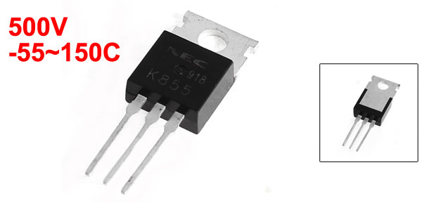 Product Name NPN Transistor Model 2SK855 VDSS 500V Storage Temperature Range -55~150C Pin Length 13mm/ 0.5" Total Dimension 29 x 9.8 x 4mm/ 1.1" x 0.38" x 0.16" (L*W*H) Hole Diameter 3.6mm/ 0.14" Main Color Black, Silver Tone Weight 3g Package Content 1 x NPN Transistor - Reviews