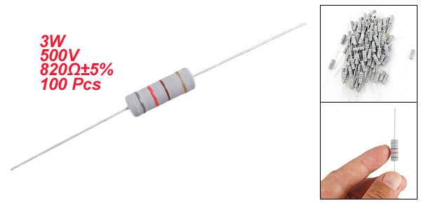 500V 820 Ohm Metal Oxide Film Resistors 3W 3 Watt 100 Pcs