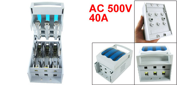 Product Name Fuse Isolating Switch Model No. 17B-40/30 Fuse Type 14 x 51mm / 0.55" x 2"(D*H) Rated Voltage 500VAC Rated Current 40A Rated Limiting Short Current 50kA Rated Heating Current 40A Poles Quantity 3 Mounted Hole Spacing 103 x 22mm / 4" x 0.86"(L*W) Overall Size 115 x 76 x 73mm / 4.5" x 3" x 2.9"(L*W*H) External Material Plastic Color See the Picture Net Weight 343g Package Content 1 x Fuse Isolating Switch - Reviews