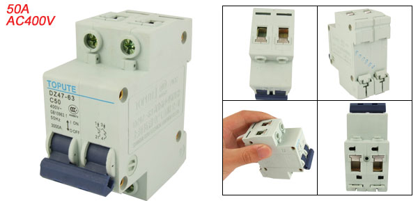 Product Name Miniature Circuit Breaker Model Number DZ47-63 C50 Rated Circuit Breaking Capacity 3000A Rated Current 50A Rated Voltage AC400V Number of Poles 2 Overall Size (Approx.) 7.7 x 6.5 x 3.6cm/3" x 2.5" x 1.4"(L*W*T ) Material Plastic, Electric Components Color As Picture Shown Weight 163g Package Content 1 x Miniature Circuit Breaker - Reviews