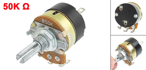 50K ohm B50K 3 Terminals Single Turn Rotary Taper Carbon Potentiometer