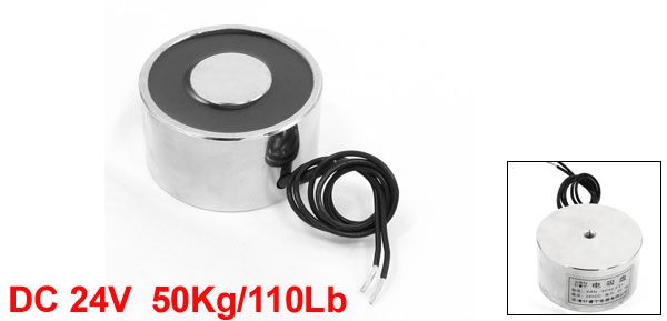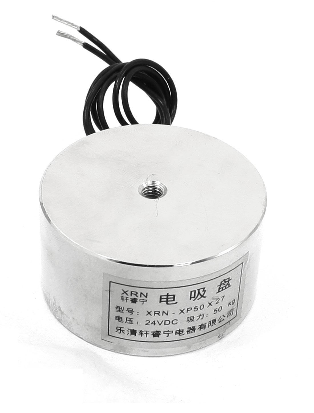 Product Name Electromagnet Solenoid Model XRN-XP50x27 Rated Voltage DC 24V Lifting Force 50Kg/110Lb Overall Size 50 x 27mm / 2" x 1.1"(Dia.*T)