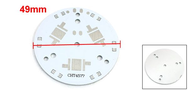 Product Name Aluminum PCB Circuit Board Fit for 3pcs x 1W/3W/5W LED Dia 50mm/3.9" Thickness 1mm/0.04" Mounted Hole Dia Small: 2mm/0.08"