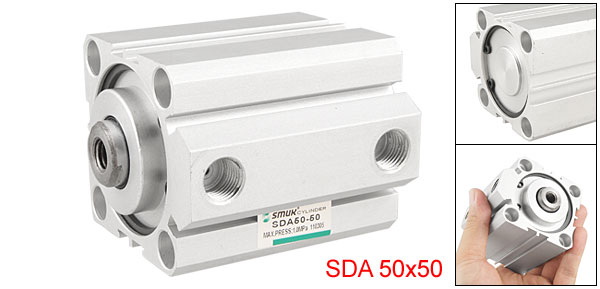 Product Name Thin Air Cylinder Model No. SDA 50x50 Motion Type Double Action Bore 50mm Stroke 50mm Max Working Pressure 1.0Mpa Ensured Pressure Resistance 10.2kgf/cm2 Piston Rod External Diameter 20mm/ 0.79" Inlet / Outlet Thread Diameter 12.5mm/ 1/2" Mounting Thread Diameter 6.5mm/ 1/4" Working Medium Pass Filtered & Lubricator Compress Air Main Material Aluminum Alloy Color Silver Tone Size 71 x 62 x 86mm/ 2.8" x 2.4" x 3.4" (L*W*H) Net Weight 630g Package Content 1 x Thin Air Cylinder - Reviews