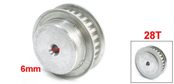 Product Name Timing Pulley Material Aluminum Color Silver Tone Number of Tooth 28T Pitch 5.08mm/1/5'' Bore Diameter 6mm/0.24" Top Diameter 35mm/1.4" Overall Size 50 x 25mm/2'' x1''(D*H) Fit Belt Width 11mm/0.43" Weight 103g Package Content 1 x Timing Pulley - Reviews