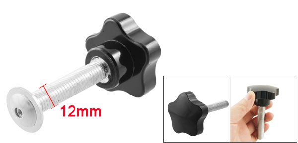 Product Name Star Knob Type Screw On Head Diameter 50mm / 1.96" Thread Length 60mm / 2.36" Thread Diameter 12mm/ 0.47" Total Height 90mm/ 3.54" Material Metal, Plastic Color Silver Tone, Black Weight 102g Package Content 1 x Star Knob - Reviews