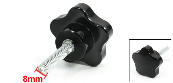 Product Name Five Pointed Star Knob Type Screw On Thread Length 40mm/1.6" Thread Diameter 8mm/5/16" Star Width 50mm/2" Total Height 65mm/2.6" Material Metal, Plastic Color Silver Tone, Black Weight 55g Package Content 1 x Five Pointed Star Knob - Reviews