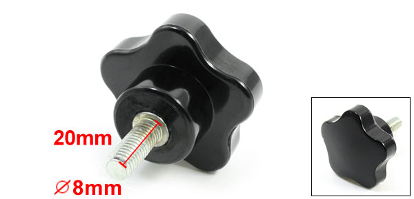 Product Name Five Pointed Star Knob Type Screw On Thread Length 20mm/0.8" Thread Diameter 8mm/5/16" Star Head Width 50mm/2" Total Height 45mm/1.8" Material Metal, Plastic Color Silver Tone, Black Weight 48g Package Content 1 x Five Pointed Star Knob - Reviews