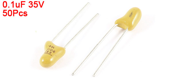 50PCS 0.1uF 35V 2 Pin Yellow Radial Dipped Tantalum Bead Capacitors