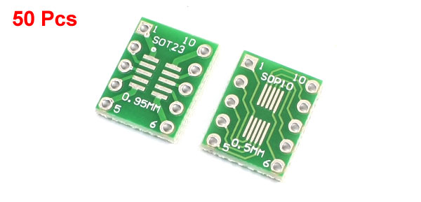 Product Name SOT23/SOP10 Adapter Plate Pin Pitch 0.95mm/0.5mm,2.54mm/0.1" Body Size 13 x 10 x 1.6mm/0.5" x 0.4" x 0.06"(L*W*T) Material FR-4, Electronic Part Main Color Green Net Weight 22g Package Content 50Pcs x SOT23/SOP10 Adapter Plate - Reviews
