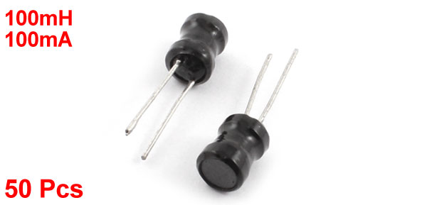 Details50Pcs 100mH 100mA 6x8mm 10% Tolerance Shielded Radial Lead Inductor Black  Product Name Radial Lead Inductor Inductance 100mH Rating Current 100mA Tolerance 10% Body Size 6 x 8mm / 0.24" x 0.31"(D*H) Lead Distance 3mm / 0.12" Color Black, Silver Tone Weight 49g Package Content 50(±2%) x Radial Lead Inductor