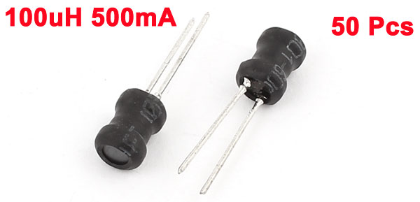 Product Name Radial Lead Inductor Inductance 100uH Rating Current 500mA Tolerance 10% Body Size 5 x 7mm / 0.20" x 0.27"(D*H) Pin Length 13mm/ 0.51" Lead Distance 3mm / 0.12" Color Black, Silver Tone Weight 31g Package Content 50 x Radial Lead Inductor - Reviews
