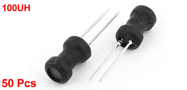 Details50Pcs 100uH Inductance 6x10mm 2 Pins Radial Leaded Inductors  Product Name DIP Inductor Inductance 100UH Body Size 6 x 10mm / 0.24" x 0.39"(D*H) Pin Length 15mm/ 0.59" Lead Distance 4mm / 0.16" Color Black, Silver Tone Weight 53g Package Content 50 x DIP Inductors