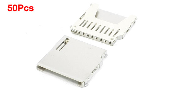 Product Name SD Card Socket Fit for SD Memory Card Insertion & Removal Method Insert In, Pull Out Material Metal, Plastic Color Silver Tone, Beige Size 26 x 26 x 2.5mm / 1" x 1" x 0.1"(L*W*T) Net Weight 103g Package Content 50 x Memory Card Sockets - Reviews