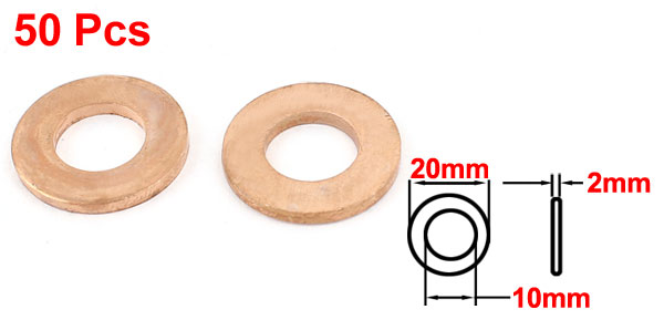50pcs 10mm Inner Dia 2mm Thickness Copper Flat Washer Spacer Fasteners