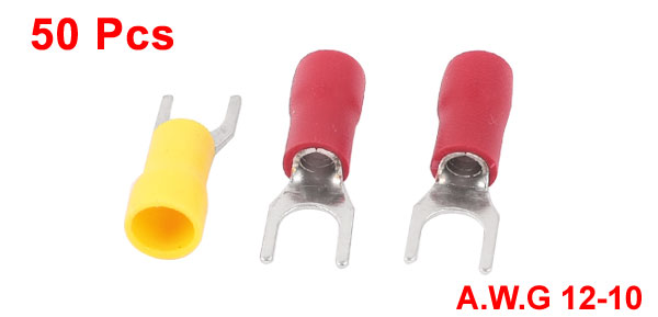 50pcs 12-10 AWG Wire Connector Insulated Fork Spade Terminal 1/4 Red Yellow