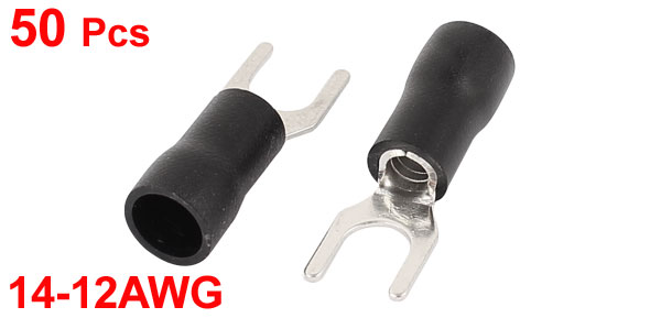 50PCS 14-12AWG #10 Stud Black Insulated Fork Spade Terminal Electrical Connector