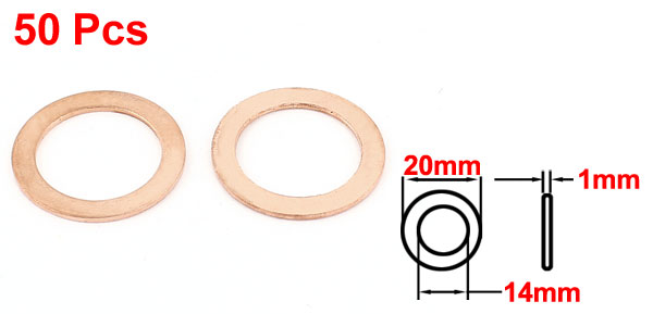 50pcs 14mm Inner Dia 1mm Thickness Copper Flat Washer Ring Seal Fitting Fastener