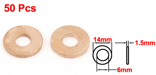 50PCS 14mm OD 6mm ID 1.5mm Thick Copper Washer Flat Ring Oil Brake Line Seal