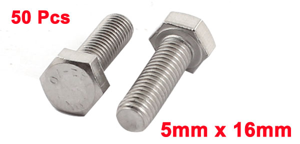 50Pcs 16mm Length 5mm Thread Hex Cap A2-70 Stainless Steel Screw Bolt