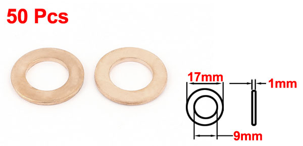 50PCS 17mm OD 9mm ID 1mm Thick Copper Washer Flat Ring Oil Brake Line Seal