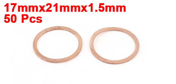 50Pcs 17mmx21mmx1.5mm Flat Copper Crush Washer Sealing Ring Gasket