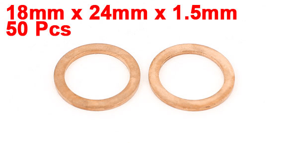 50pcs 18 x 24 x 1.5mm Copper Flat Washer Spacer Gaskets Seal Ring Fasten Tool