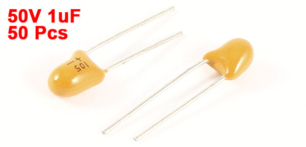 50PCS 1uF 50V 2 Pin Yellow Radial Dipped Tantalum Bead Capacitors